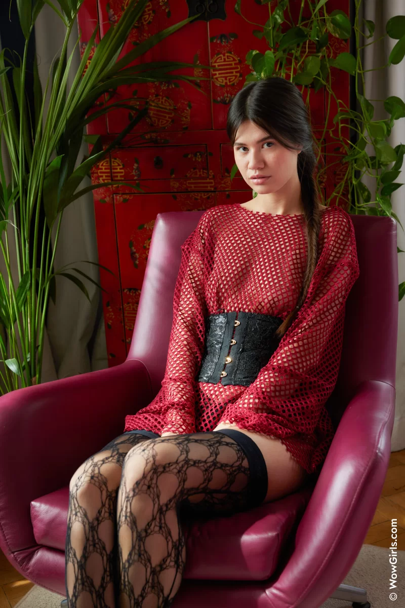 Бесподобная брюнетка Evelin Elle демонстрирует свое изумительное тело и аппетитную попку, страстно позируя в сексуальных чулках на кожаном кресле. Молодая красотка игриво раздвигает ножки, открыв обзор на бритую писечку.- Голые девушки Брюнетки Маленькие титьки Попки Бритые киски В чулках