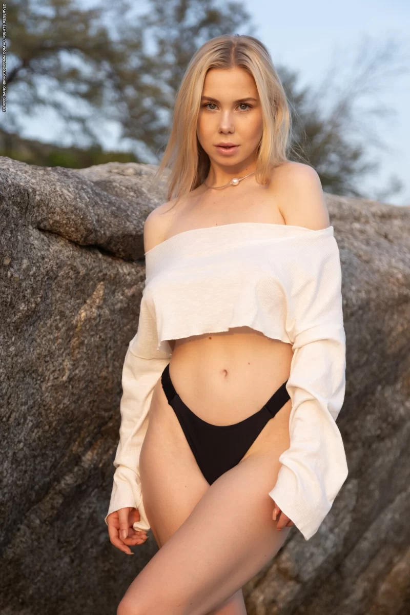 Похотливый взгляд блондинки Насти и ее сексуальная фигура с большими сиськами и пышной попкой притягивают взгляды. Голая девушка игриво позирует на берегу моря, выставляя на обзор свои бесподобные прелести.- Голые девушки Блондинки Русские Большие сиськи Жопы На пляже