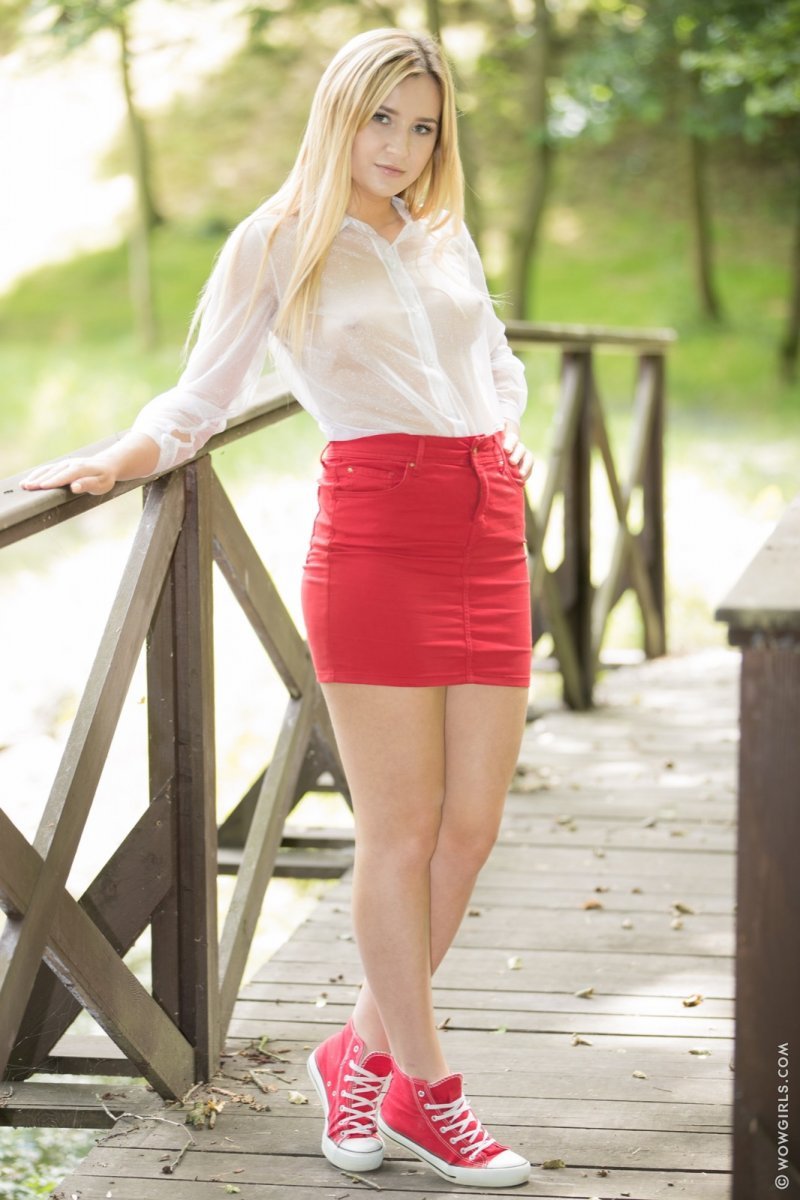Прогулка на свежем воздухе очень сильно возбудила русскую модель Cherry Bright. Ощутив как же сильно напряглась киска, русая шалунишка в короткой красной юбке и белой рубашке стала раздеваться. Трогая небольшие, но зато красивые груди, страстная провинциальная жительница начинает поглаживать выбритый лобок. Устав двигаться, пухленькая телка берет в руки мобильный телефон и начинает делать эро селфи, на которых голая жопа смотрится бесподобно.